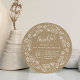 Rustic Thanksgiving dinner invitation in a unique round shape features a wreath of autumn leaves encircling your invitation details in white on a kraft background. Use this cute rustic-chic invitation for Thanksgiving dinners, dinner parties, or "Friendsgiving" celebrations.