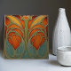 Introducing the Autumnal Flourish Ceramic Tile, a vibrant and elegant addition to your home décor, printed by Zazzle. This flat ceramic tile, with no embossed features, showcases an exquisite Art Nouveau design in warm autumnal tones of orange, gold, and teal. The intricate, flowing lines form a harmonious floral motif, capturing the essence of nature's beauty. Ideal for kitchen backsplashes, bathroom walls, or as a unique decorative accent, this tile brings a touch of vintage sophistication and artistic charm to any space. Embrace the timeless elegance of Art Nouveau with this captivating tile.