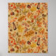 Hand-painted autumn pattern with various autumnal leaves, berries, acorns, and mushrooms