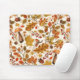 Hand-painted autumn pattern with various autumnal leaves, berries, acorns, birds and mushrooms