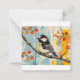 Experience the charm of autumn with this notecard featuring a striking chickadee perched on a branch adorned with fiery red and orange leaves. The vivid, contrasting backdrop of cool and warm hues captures the essence of fall, making this card perfect for seasonal greetings or notes of appreciation. It's a delightful celebration of nature's beauty as the seasons change.