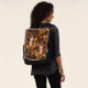 Autumnal squirrels and flora on dark brown backpack