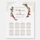 Seating plan for guests attending your wedding day, with this elegant autumnal boho wedding seating plan. Featuring a classic white background, with gold glitter in 2 of the corners, an array of autumnal colored foliage designed frame around a stylish wedding template which is easy to customize. All font styles, sizs and color can be changed by clicking on the customize further link after personalizing.