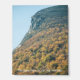 A photograph of Cannon Mountain in the fall. The trees' leaves have turned from green to shades of orange and yellow. These colors blanket the mountain, reaching near the top. The profile of the mountain is the remains of the granite stone where a prominent face used to be. This fall day has a clear, blue sky as the background of the scene. At the bottom of this small print, in a white font is, "The Great Stone Face of New Hampshire". Image Copyright ©2024 Kimberly J Tilley. zazzle.com/store/developingnature