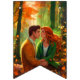 Amidst the golden hues of an autumn forest, two lovers sit close, their eyes locked in a tender moment. The soft sunlight filters through the leaves, casting a warm glow that envelops them in an atmosphere of romance and tranquility. Their gentle expressions and the rich, vibrant colors of the scene capture the beauty of love in a fleeting season.