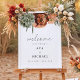 This boho wedding welcome sign features rich terracotta florals and earthy succulent embellishments. Edit most wording to meet the needs of your event. This wedding welcome is perfect for your bohemian desert or burnt orange fall themed event.