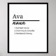 Crafted with a blend of elegant fonts and delightful illustrations, this poster highlights Ava's name in a way that is both stylish and meaningful. The personalized definition captures the essence of her personality, making it a cherished keepsake that she will treasure for years to come.