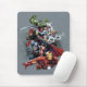 Avengers Assemble | This cartoon graphic features the Avengers rushing forward into battle: The Hulk, Black Widow, Falcon, Hawkeye, Thor, Captain America, and Iron Man.