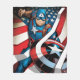 Check out Captain America holding his shield ready, white stripes of the American flag flowing around him.
