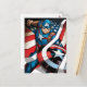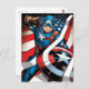 Check out Captain America holding his shield ready, white stripes of the American flag flowing around him.