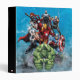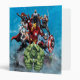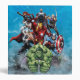 Check out the Avengers with Hulk leading the charge with a smash, and in the back: Thor, Iron Man, Captain America, Black Widow, Falcon, and Hawkeye.