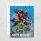 Check out the Avengers with Hulk leading the charge with a smash, and in the back: Thor, Iron Man, Captain America, Black Widow, Falcon, and Hawkeye.