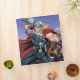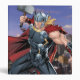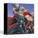 Check out Thor leaping into battle with his hammer, Mjolnir, in hand.
