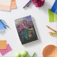 I was super excited when I got my cover in. It is attached by a magnet across the edge. I don’t think it will be very protective but it is very cute. I’m going to keep my iPad in a sleeve and use this face cover while I have it out. It folds to create a tilt for better viewing and to keep the iPad at a slight angle for typing. The colors are bright and it is fun. I’ve really enjoyed it. The personalization looks like amazing. It is the same color as the picture and is the same brightness. Well done! Very nice.