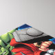 Check out Hulk, Thor, Captain America, and Iron Man stacked vertically in this high tech style graphic, featuring the Avengers Logo with starburst lighting.