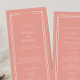 This soft blush peach wedding program from the Avery Suite features modern white sans serif type, a delicate double-line frame, and an airy layout. The modern, minimalist look feels warm and romantic for contemporary weddings.