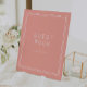 This soft blush peach guest book sign from the Avery Suite features modern white sans serif type, a delicate double-line frame, and an airy layout. The modern, minimalist look feels warm and romantic for contemporary weddings.