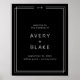 This wedding welcome sign template from the Avery Suite features a dark black background, a slim white double frame, and clean sans serif type. It creates a modern, polished look suited to city venues, galleries, and evening weddings.