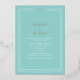 This fresh minimalist foil wedding invitation from the Avery Suite in soft mint green, features a slim double-line border and crisp uppercase sans serif typography in white. It's clean, airy, and modern: perfect for contemporary weddings.