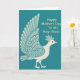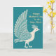 Designed with a deep ocean-teal background, the front features a creamy off-white bird on the left, turned to the right as if leaning in with quiet affection ❤️. Its tail fans wide and its crest lifts neatly, giving the figure a proud but gentle posture. Across its body and feathers, fine swirls, dots, and thin lines in blue-green and pale gray create a decorative, folk-inspired look that feels like a tender gesture carefully repeated. A small round black eye adds a calm, friendly expression, like it’s meeting someone’s gaze across the card. On the right side, an appreciative message appears in warm golden-yellow lettering, set against the teal so it reads clearly. The cool background and warm text play off each other like a soft back-and-forth between close friends 🌼. The overall layout keeps the bird anchored to the left while the golden-yellow words sit to the right with open space between them. The teal field stays mostly solid, making the patterned bird and the golden-yellow text stand out.
