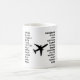 white mug with the phonetic alphabet pilots use when communicating from the airplane.