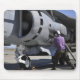 Aviation fuel technician attaches a fuel line to an AV-8B Harrier.