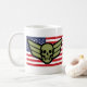 Show your patriotic spirit with a bold twist using the Aviator Badge American Flag Mug. This classic mug features the iconic American flag, accented with an army green aviator badge displaying a striking skull in the middle. The unique combination of patriotic and military elements on both sides of the mug creates a powerful and eye-catching design. Perfect for enjoying your morning coffee, afternoon tea, or any beverage of choice, this mug adds a touch of rugged patriotism to your daily routine. Whether you're at home, at the office, or gifting it to a fellow patriot, the Aviator Badge American Flag Mug is sure to make a statement. Celebrate your love for country and honor the bravery of aviators with this distinctive and stylish drinkware.
