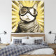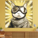 A fearless feline aviator gazes straight ahead through oversized leather goggles with shining chrome rims. A cozy plaid scarf wraps the neck while dramatic golden sunburst rays explode behind, studded with dark speckles like an old propeller-plane poster. Warm sepia fur tones contrast the bold retro halo, blending vintage adventure, quiet swagger, whimsical charm, and unmistakable cat coolness. Perfect for kids’ rooms, game dens, home offices, pet-lover walls, quirky bathrooms, or as playful gifts for cat people, aviation fans, retro enthusiasts, or anyone who loves humorous, stylish animal portraits with personality.