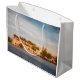 So very happy with the quality of this bag! The thickness of the paper along with the glossy finish I just love it! Can’t wait to give our pup his gifts in this awesome custom gift bag! The printing came out amazing! The black crisp clear printing on the white bag looks amazing! Very pleased with this purchase!