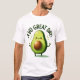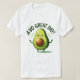 Embrace the joy of wholesome goodness with this "Avo Great Day!" avocado t-shirt! The design showcases an adorable avocado character, complete with a radiant smile, bright eyes, and a perky wave, instantly spreading cheer. Its soft green hues and the rich brown of the pit add a natural and appealing color palette, while the play on words adds a light-hearted pun to your day. It’s a must-have for avocado aficionados and anyone who appreciates a pun-filled approach to positive vibes. This t-shirt pairs well with a casual day out or a trip to the farmer's market.