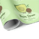 Wrapping paper for a baby shower with smiling avocado and avocado pit cartoon characters. The two happy characters are part of a green design with customizable words. This item is part of a baby shower party collection that includes an invitation, napkins, and more. Customize these items, add them to your cart, and have a happy baby shower!