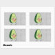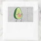 This sticker is printed with a hand-drawn design featuring an avocado signing the ASL sign for "AVOCADO".
