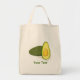 A graphic illustration of an avocado on this grocery tote bag. Original artwork: Copyright Charmaine Paulson
