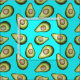 Avocados Pattern with teal blue background
