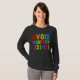 I love this artist. Their designs are cute and whimsical. But I ordered too large a size. I don’t mind as I’m going to use it to sleep in. I’ll probably order this in a short sleeve style to wear in the summer. My family loves my chocolate chip cookies so this design has significance for me. Bright and bold. It was off center but that was my fault as I edited the design. Should have left it alone but was just trying out the editing feature. Great editing system to play around with and change things up a little bit