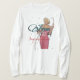 I love this shirt. I had written to the artist asking her if this picture was available on a shirt, and she wrote me back telling me where I could find the shirt. These shirts can be custom made to have a different saying. I loved this saying and went with it. The artist wrote me back later to tell me that she had seen my order go through. How's that for service? Pretty special. It's just as displayed. Perfect!