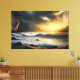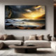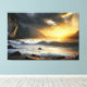 A powerful scene where the ocean meets the mountains beneath a blazing sky. The crashing waves symbolize movement and transformation, while the sun breaks through the clouds bringing hope. A striking artwork for spaces seeking energy, depth, and inspiration.