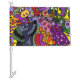 Funny artistic animals abstract art original car flag. Design includes dog, giraffe, pig, duck, owl, cat, and more. Can also add custom text when ordering.