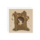 A cute illustration of a beagle in a hollow tree covered in colorful leaves