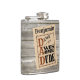 Well made flask, a little better than I had expected. Flask came in clear plastic box which gave it a nice presentation when I took it out of the zazzle packaging. Image is not printed on flask but on sticker. Don't know how this will hold up I haven't used it yet. This would make a Great gift! I plan to purchase more for friends! Cheers. I thought a little brighter than computer. Very crisp, writing wasn't
