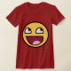 My overall review is that the T-shirt is nice, it fits true to size however the font is significantly smaller than advertised and you can't read it. The printing is unreadable and there is a strain to read it. It does not look like the advertised product. Maybe the shirt color is darker or a larger more visible font should have been used. Photos with and without flash and font is barely legible.