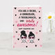 This card celebrates friendship in a sweet, modern way for “Galentine’s Day.” The main text reads, “YOU ARE A FRIEND, A COUNSELOR, A TROUBLEMAKER, AND totally awesome!” and it takes up most of the top part of the card. The words are mostly in black block letters, with “totally awesome!” in a magenta hand-script style that stands out. Under the message, there are two women shown from the shoulders up with simple black outlines on a soft pink background. Both have high bun hairstyles and wear hot pink, heart-shaped sunglasses, giving them confident, happy expressions. Small hearts in light pink and black are scattered around them like little confetti, adding to the love-filled feel ❤️💌🍫.
