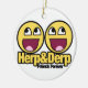 Lightweight, smooth, pure white ornament with nice sheen. Perfect size to be seen from across the room ... and to attract closer inspection! Price was great for ordering enough for the whole family! Clear, bold black design just as requested. Matches the order exactly. Just so nice!