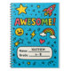 Make school time exciting with this vibrant and playful kids notebook! Featuring a bold “AWESOME!” design with colorful doodles—stars, rockets, rainbows, emojis, and more—this notebook cover is perfect for kids of all ages. It includes a customizable space to write the child’s name and grade, making it perfect for school supplies, back-to-school gifts, or classroom organization. Ideal for both boys and girls, this eye-catching design makes learning more fun and personal!
