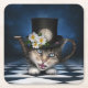 Awesome Mad Hatter Teapot Cat Whimsical Design Square Paper Coaster