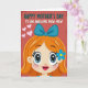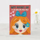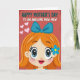 This card features a cheerful cartoon-style woman filling the lower part of the design, her wide blue eyes and thick lashes giving her a sweet, affectionate look ❤️. Soft pink blush warms her cheeks, and her bright smile feels like it’s directed toward someone she loves. Her long orange hair flows around her face with gentle shading, topped by a large teal bow that stands out near the top of her head. A small blue flower sits tucked behind one ear, adding a tender, friendly touch. The background is a deep textured red, with three light pink hearts floating along the left side like little notes of affection 🌼. Across the upper area, the message “HAPPY MOTHER’S DAY TO AN AWESOME MAW MAW” is set in strong all-caps lettering, mixing teal and white for contrast. The text sits centered near the top, while the smiling face below balances the layout. The red backdrop has a subtle grainy pattern, and the hearts are rounded and softly shaded in pale pink.