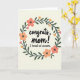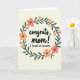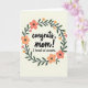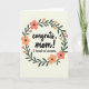 Designed with a circular wreath of deep green leafy branches, dotted with coral-peach flowers, spiky orange blooms, and tiny pink buds that feel like a gentle hug around the message ❤️. The off-white background keeps the scene calm and airy, letting the foliage and blossoms do the flirting with the viewer through soft color contrasts. In the center, the main line of text reads “congrats, mom!” in a dark ink tone, set large and easy to notice. Just below it, “I turned out awesome.” appears smaller in a neat, casual lettering style, adding a friendly wink without needing extra decoration. The coral-peach flowers have five rounded petals and darker textured centers, giving the wreath a cozy, lived-in look. Small clusters of buds and narrow leaves fill gaps around the circle, creating a balanced frame that feels close and affectionate 🌼. The text stays neatly contained inside the wreath with generous spacing, while the floral ring remains evenly distributed around the edges. The deepest greens sit along the outer curve of the wreath, with orange accents peeking through between leaf tips and blossoms.