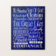 Awesome names of God design featuring: El Shaddai, Son of God, Wonderful Counselor, Elohim, Comforter, The Great I Am, Alpha and Omega, Almighty, Jehova, Redeemer, Master, Paraclete, Shepherd, The Rock, Lord, Savior, Messiah and Emmanuel in a beautifully typeset layout on a bold, royal blue background.