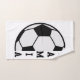 This cool and personalized hand towel design features a black and white soccer, with a soccer ball and name combined in the center. This towel can be personalized with any name, team and or organization of your choice. This cool soccer themed hand towel is great for any soccer/sports team, player, and or fan.
