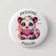 Cute button with cartoon opossums with possum pun, "awesome possum". Cute pink possum in flowers.